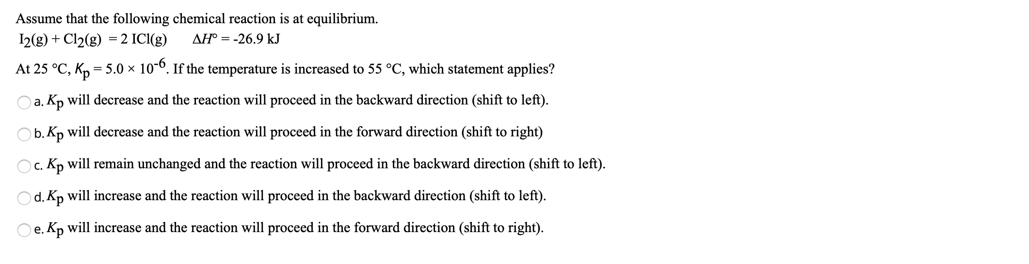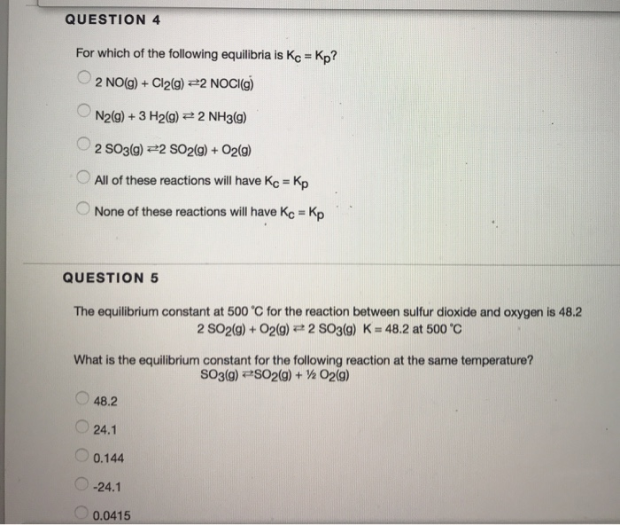 Solved Question 4 For Which Of The Following Equilibria Is Chegg Com