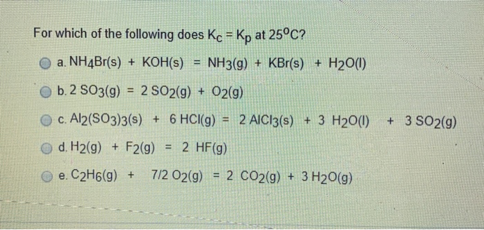 Solved For Which Of The Following Does Kc Kp At 25 C A Chegg Com